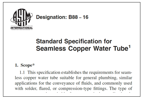 ในประเทศไทยเรามักจะใช้ “ท่อม้วน” ที่ผลิตตามมาตรฐาน ASTM B280 ขนาดตั้งแต่เส้นผ่านศูนย์กลางภายนอก 1/4″ จนถึง 3/4” และใช้ “ท่อตรง” ที่ผลิตตามมาตรฐาน ASTM B88 หรือมาตรฐาน ASTM B280 สำหรับท่อทองแดงขนาดเส้นผ่านศูนย์กลางภายนอกตั้งแต่ 3/8” จนถึง 2-1/8” มาถึงจุดนี้ท่านอาจจะมีคำถามว่า มาตรฐาน ASTM B280 คืออะไรและแตกต่างจากมาตรฐาน ASTM B88 อย่างไร