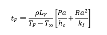 tF = เวลาที่ใช้ในการแช่เยือกแข็ง , วินาที