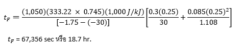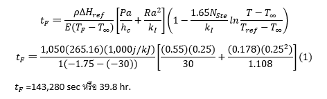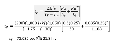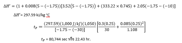 จากตัวอย่างที่ 1 เมื่อใช้สมการ Nagaoka ในการคำนวณจะได้เวลาในการแช่เยือกแข็งดังนี้