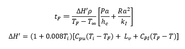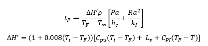 ในเนื้อหาบทความนี้จะกล่าวถึงการใช้สมการทางคณิตศาสตร์ในการทำนายเวลาที่ใช้ในการแช่เยือกแข็ง โดยจะใช้สมการทางคณิตศาสตร์ดังต่อไปนี้