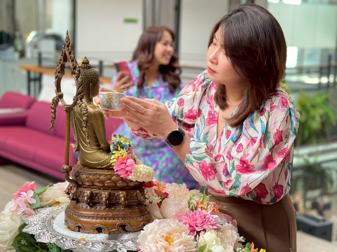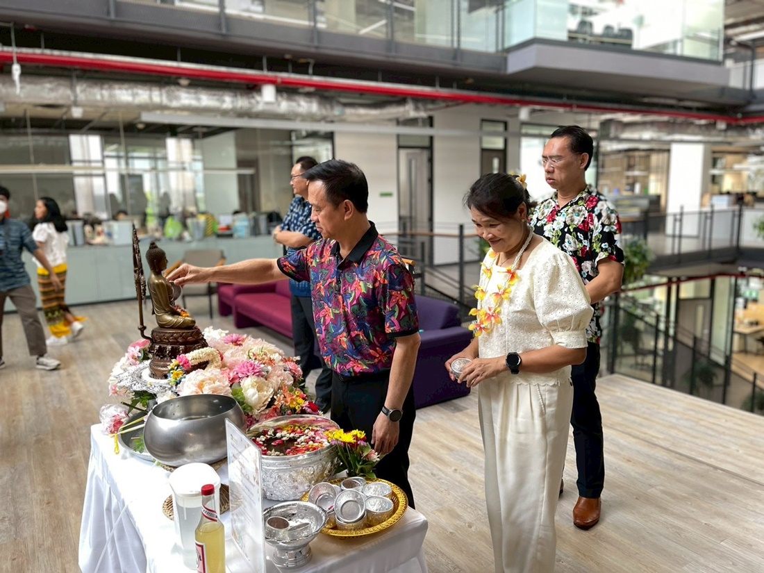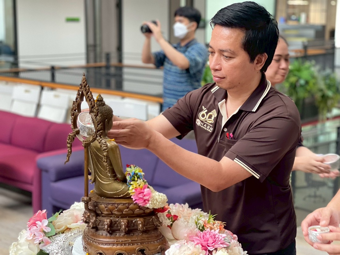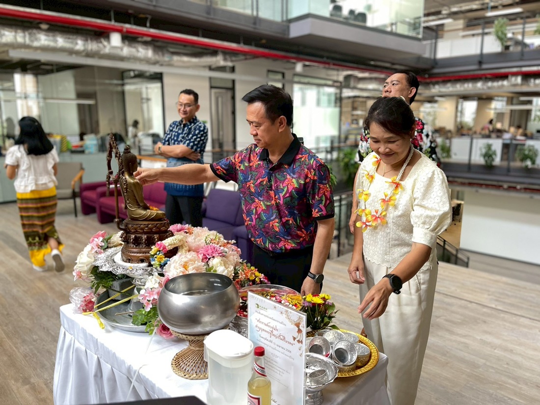 The event featured a series of meaningful activities, starting with a traditional merit-making ceremony and an auspicious blessing from the office shrine. Following the rituals, employees participated in the "Rod Nam Dum Hua" ceremony—a traditional water-pouring rite to show respect and seek blessings from senior executives.