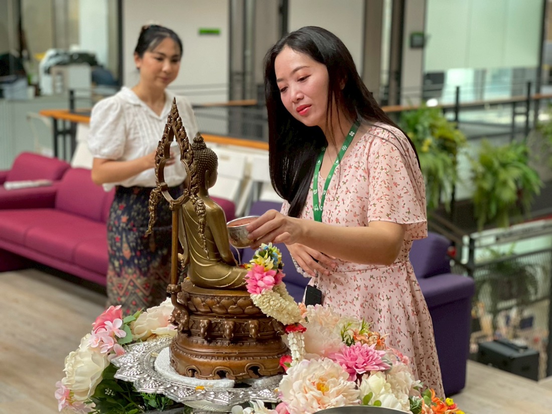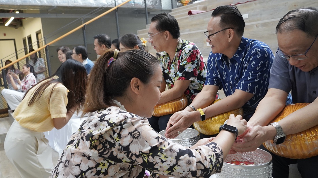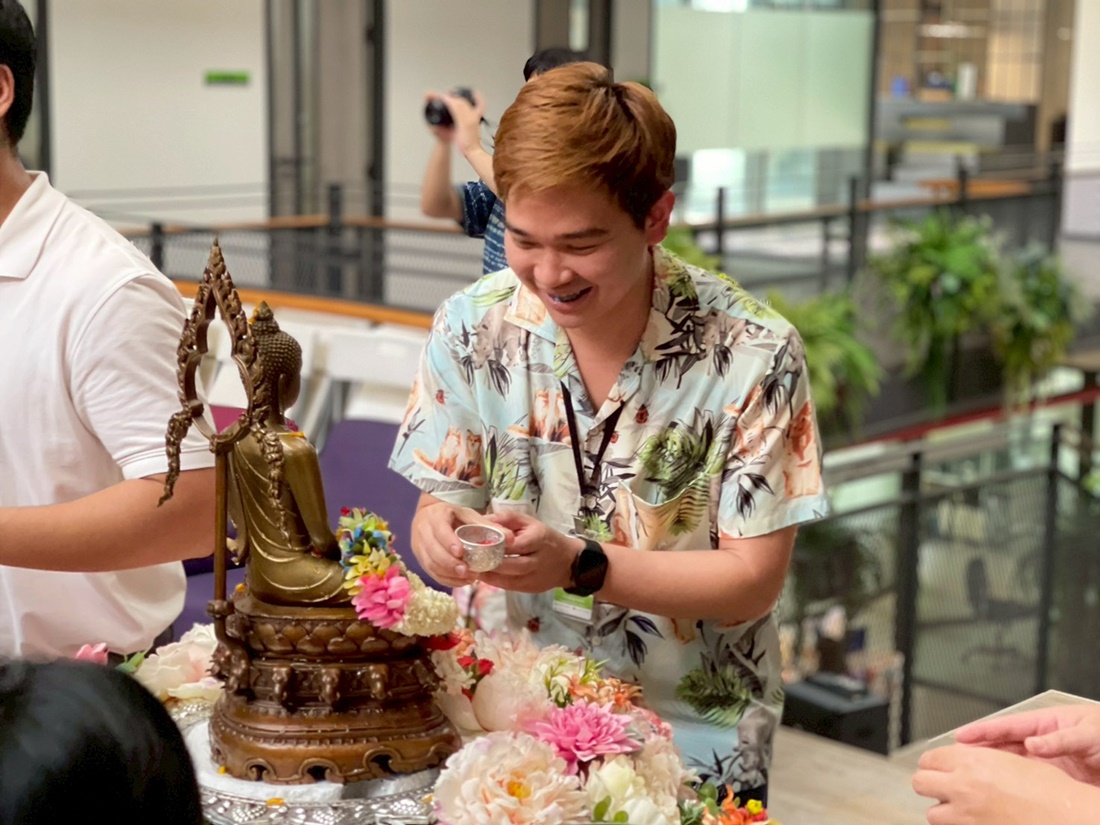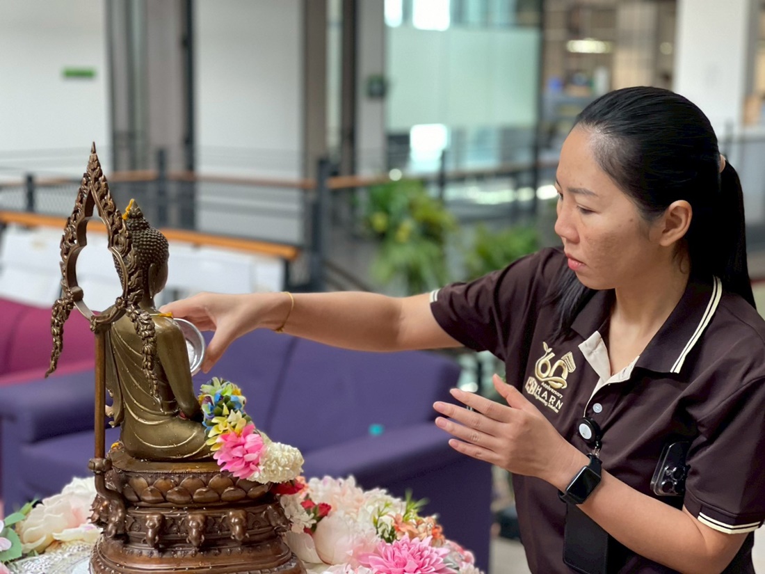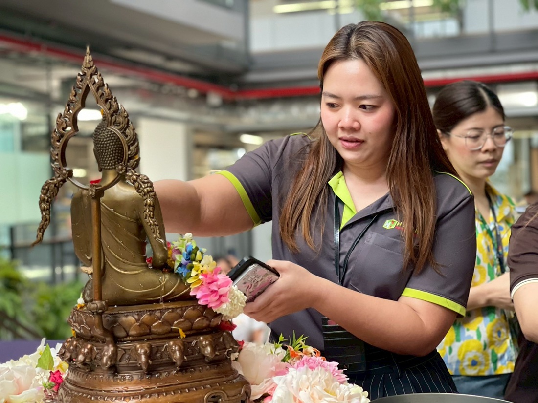 The event featured a series of meaningful activities, starting with a traditional merit-making ceremony and an auspicious blessing from the office shrine. Following the rituals, employees participated in the "Rod Nam Dum Hua" ceremony—a traditional water-pouring rite to show respect and seek blessings from senior executives.