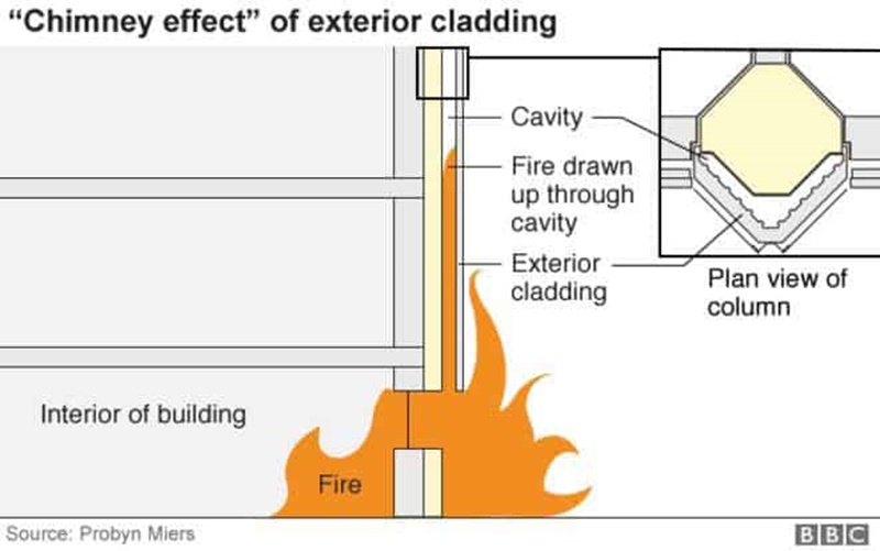 หลังเหตุเพลิงไหม้ผลจากการตรวจสอบพบว่าอาคารนี้หลังจากการปรับปรุง มีการเพิ่มฉนวนความร้อนซึ่งประกอบไปด้วยแผ่น Aluminium Cladding ที่มีใส้กลางเป็นแกนโพลีเอธิลีน ซึ่งเป็นพลาสติกชนิดติดไฟง่าย ทำให้เมื่อเกิดเหตุไฟสามารถลุกลามไปได้อย่างรวดเร็ว