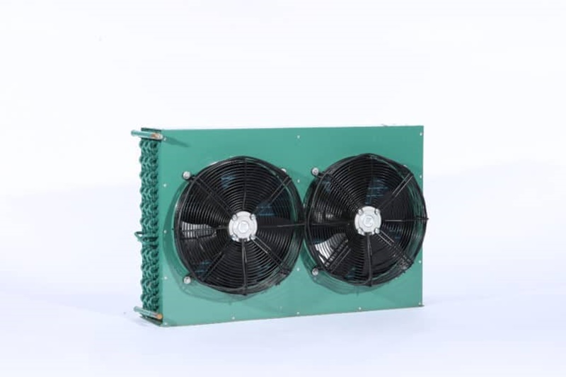 คอนเดนเซอร์ชนิดนี้จะใช้การติดตั้งพัดลมหรือโบลเวอร์เพื่อช่วยในการเพิ่มปริมาณลมที่ผ่านผิวของคอนเดนเซอร์ซึ่งข้อดีของชนิดนี้จะช่วยลดขนาดและรูปร่างของคอนเดนเซอร์ได้