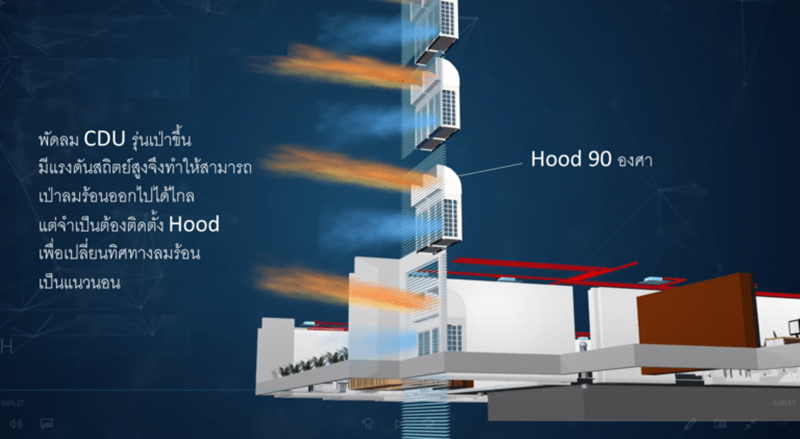 นอกจากนี้ยังมีคอยล์ร้อน (CDU) รุ่นพิเศษที่สามารถทำน้ำร้อนได้ ทำให้ประหยัดพลังงานอย่างมากเพราะระบบจะนำความร้อนที่เหลือทิ้งจากกระบวนการทำความเย็นไปใช้ในการผลิตน้ำร้อน