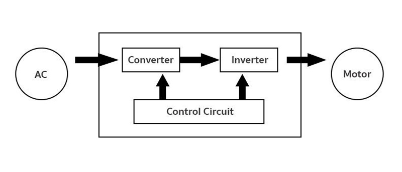 จากนั้นไฟฟ้ากระแสตรงจะถูกแปลงไปเป็นไฟฟ้ากระแสสลับที่สามารถปรับแรงดันและความถี่ได้ด้วยวงจรที่ชื่อว่า วงจรอินเวอร์เตอร์ (Inverter Circuit) เพื่อทำให้กระแสไฟฟ้ามีความเหมาะสมกับการออกแบบเครื่องทำความเย็น