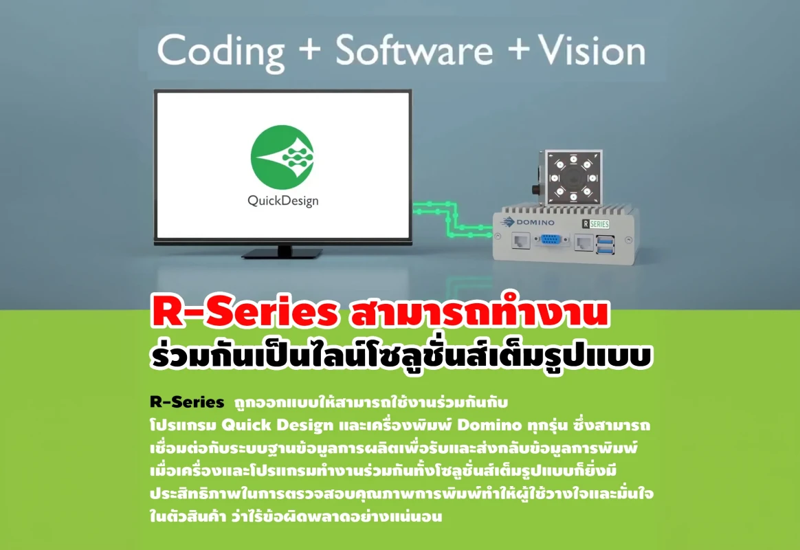 การเลือกใช้ Smart Vision System รุ่น R-Series คือการลงทุนเพื่อความสบายใจ เพราะนอกจากจะช่วยเพิ่มประสิทธิภาพในไลน์ผลิตแล้ว ยังช่วย "เช็คโค้ดให้ชัวร์ ไม่มีพลาด" ป้องกันปัญหาสินค้าถูกตีกลับ และรักษามาตรฐานแบรนด์ของคุณให้ยั่งยืน