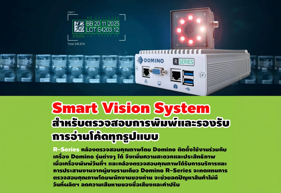 ในยุคที่มาตรฐานการผลิตมีความสำคัญสูงสุด การปล่อยให้สินค้าที่มี "ข้อผิดพลาดจากการพิมพ์" หลุดออกไปสู่ท้องตลาด ไม่เพียงแต่จะทำให้เสียชื่อเสียง แต่ยังอาจนำมาซึ่งค่าปรับที่มหาศาล HARN Engineering Solutions ขอแนะนำ Smart Vision System รุ่น R-Series จาก Domino ตัวช่วยอัจฉริยะที่จะมาเปลี่ยนระบบการตรวจสอบคุณภาพ (QC) ของคุณให้เป็นอัตโนมัติและไร้ข้อผิดพลาด